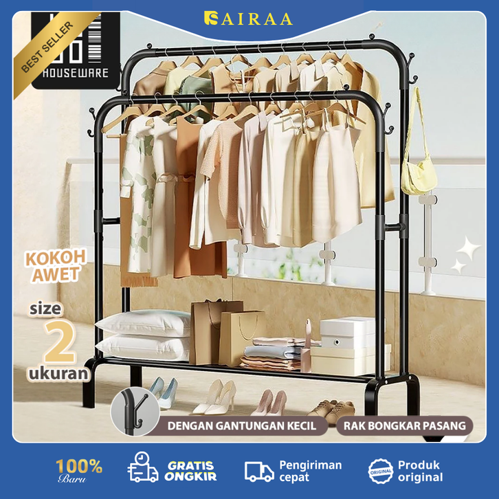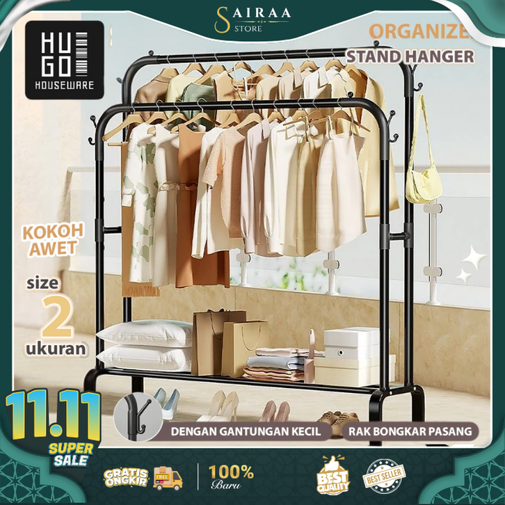 HUGO Stand Hanger Gantungan Baju Berdiri Bahan Besi Tempat Gantung Baju Gawangan Baju Rak Baju Serbaguna Premium Quality