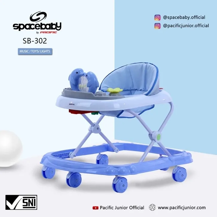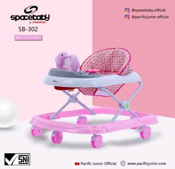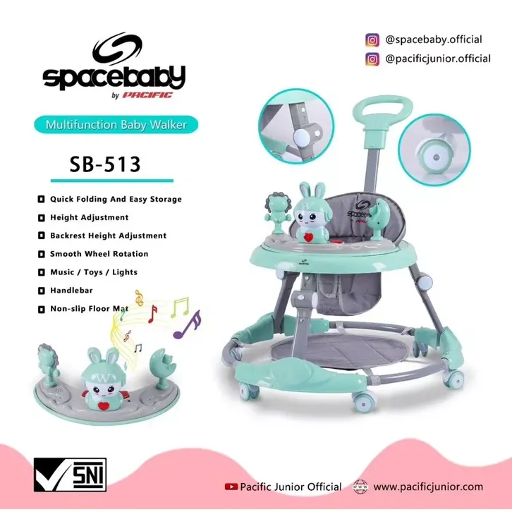 Roda Bayi Belajar Jalan / Baby Walker Spacebaby SB 513 + Tongkat Dorong Alas