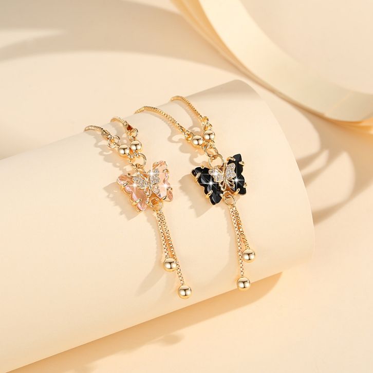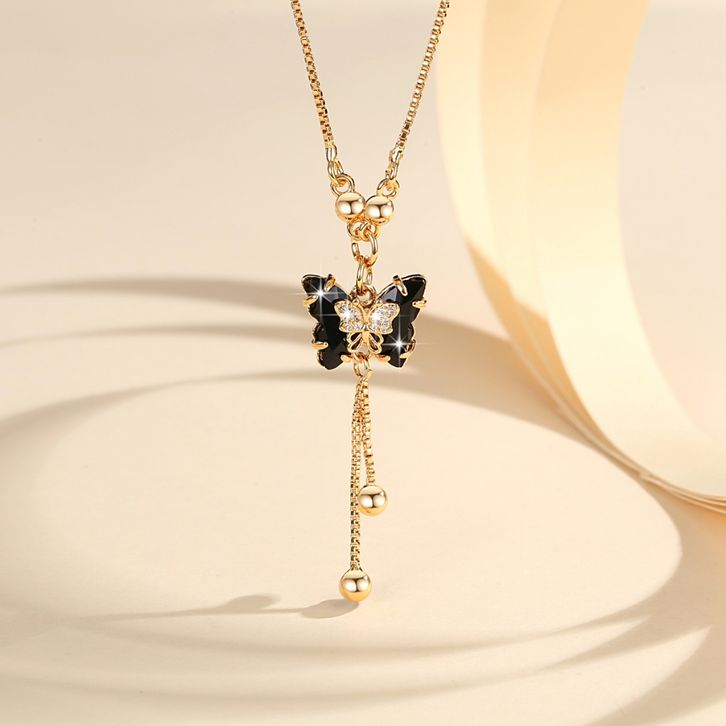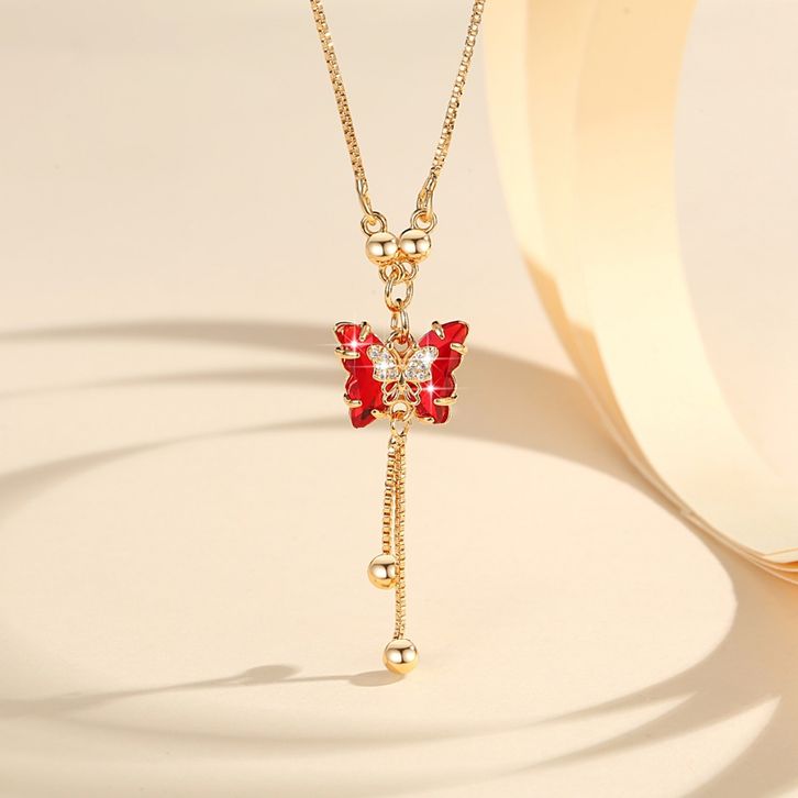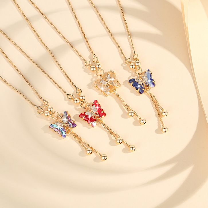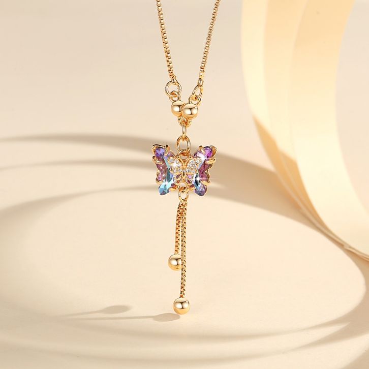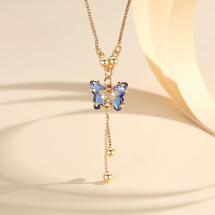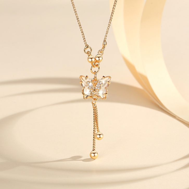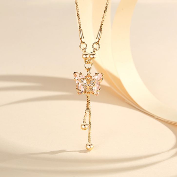 Kalung Lapis Emas Kupu-kupu Kristal Wanita Dewasa Aksesori Fashion Korea Baja Tahan Karat Tahan Pudar LM616