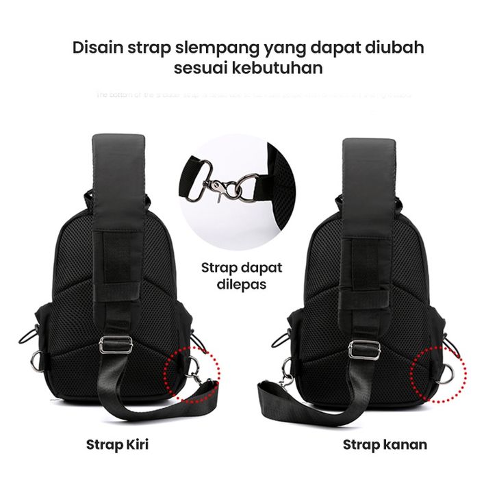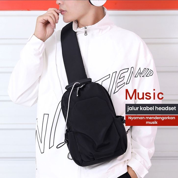 Tas Selempang Earphone Hole Anti Air Tas Slempang Pria Casual Sling Shoulder Bag Import TS710