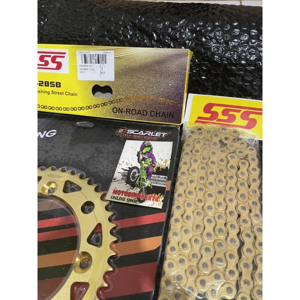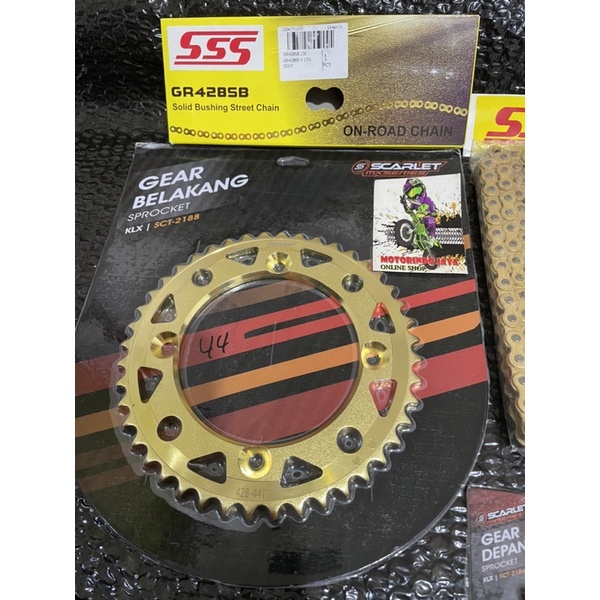 gear set klx d tracker 150 scarlet rantai sss supermoto harian depan 13 14 15 belakang 43 44 45