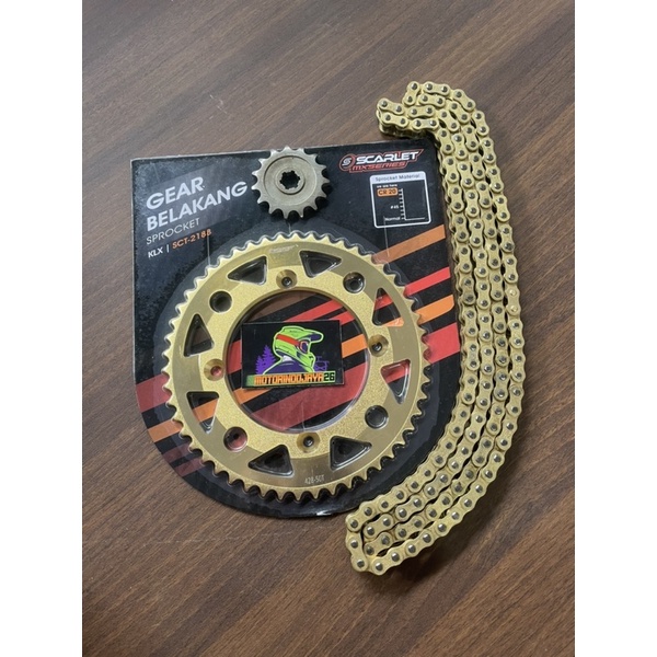 Gear set Klx 150 D Tracker 150 Scarlet Set Rantai Gold supermoto Harian Trabas