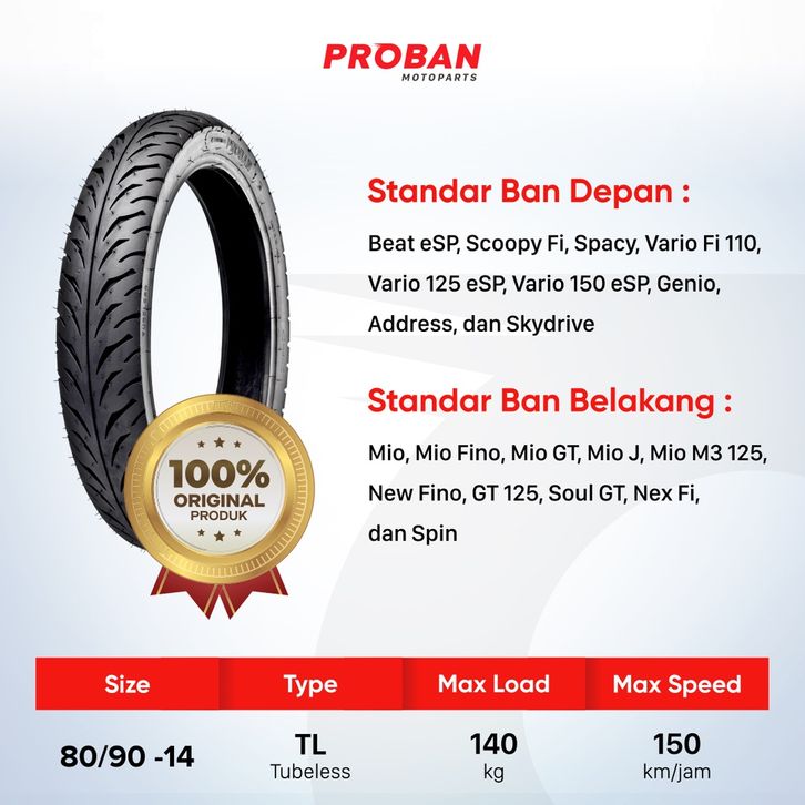 [Star] ban motor ring 14 tubeless proban - PAKET BUNDLE BAN DEPAN BELAKANG SEPASANG RING 14 BAN MOTOR TUBELESS PROBAN 80