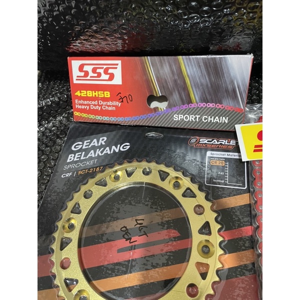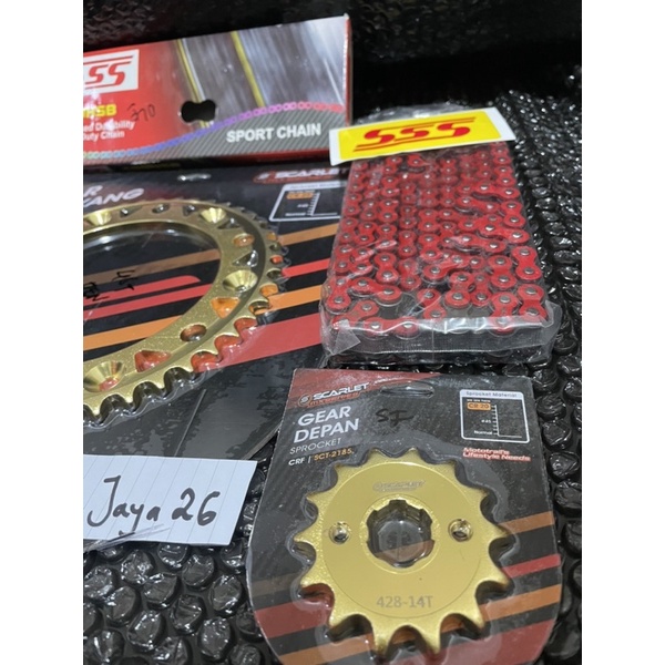 Gear gir set paket CRF 150L scarlet set rantai sss merah supermoto harian trabas MX SERIES original