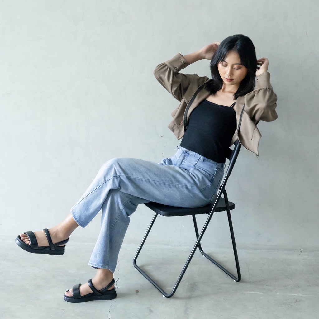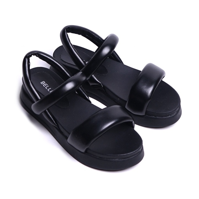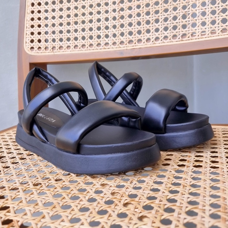 Sandals FORI BLACK | sendal wedges tali pergi wanita hak sedang tinggi 4cm warna hitam | sepatu sandal gunung