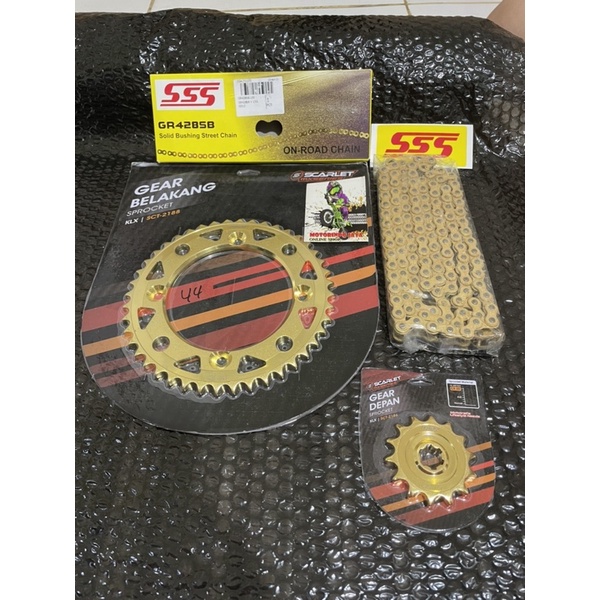 Gear set Gir paket Scarlet D tracker 150 Klx 150 Set Rantai SSS ukuran 43 44 45 supermoto Harian