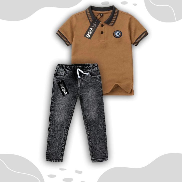 Setelan Celana Jeans Panjang Anak Laki Laki Distro Premium Kaos Kerah Polo Setelan Anak Laki Laki 1-12 Tahun Pakaian An