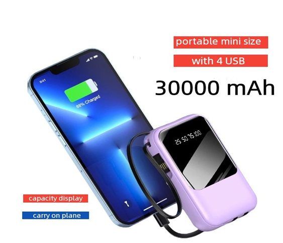 Powerbank 30000 mAh mini with 4 usb power bank fast charging ( Bisa beli Kabel data Saja)