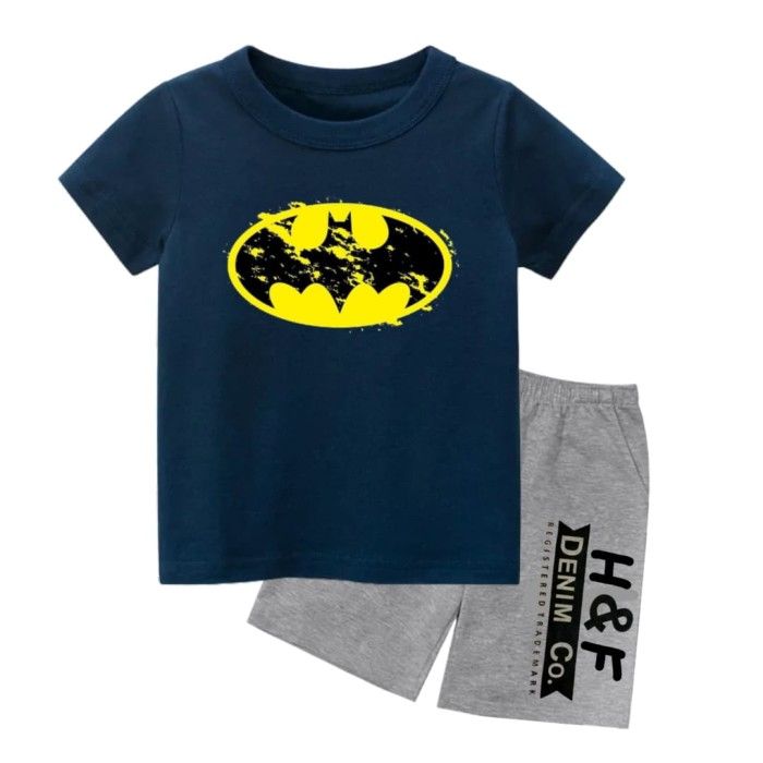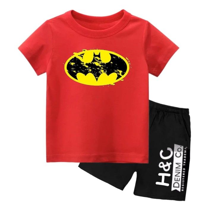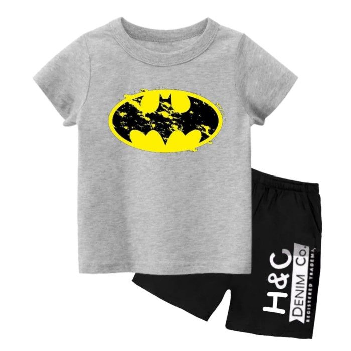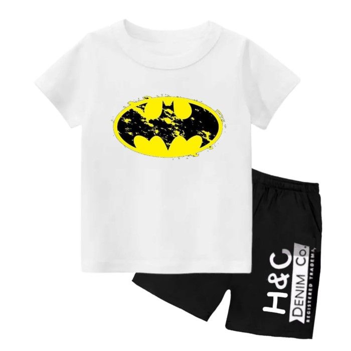 Setelan Baju Anak Laki Laki Lengan Pendek Kaos Anak Laki DTF Bat Logo - Putih, size 2
