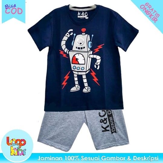 Logokids Baju Kaos Setelan Anak Laki-Laki Motif Robot Navy 1-10 Tahun - 1th