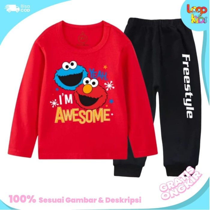 Logokids Setelan Celana Jogger / Setelan Lengan Pjg Anak ELMO 1-10thn - No6