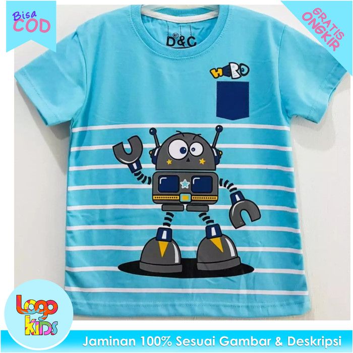 Kaos Anak Murah Lengan Pendek Logokids Robot Salur Blue 1-10 Tahun - 1th