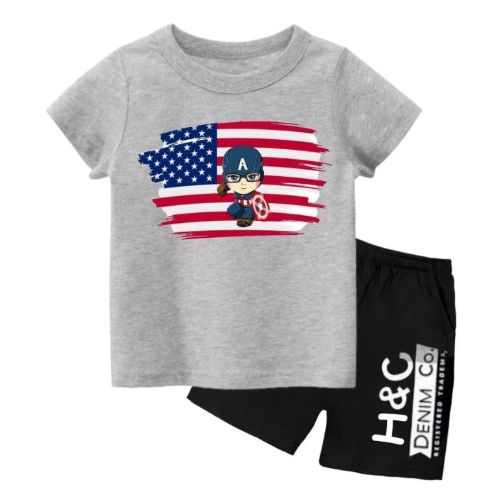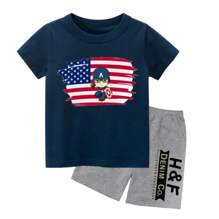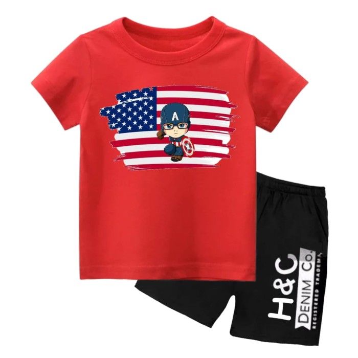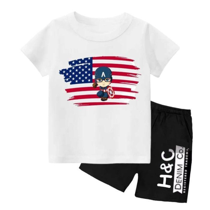 Setelan Anak Laki Laki Lengan Pendek Kaos Anak Laki DTF Kapten 2-10 Th - Putih, size 2