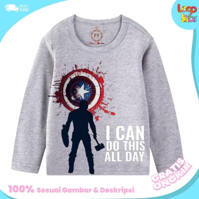 Atasan Kaos Anak Laki Laki Lengan Panjang Kapten Abu Usia 1-10 Tahun - Size 2