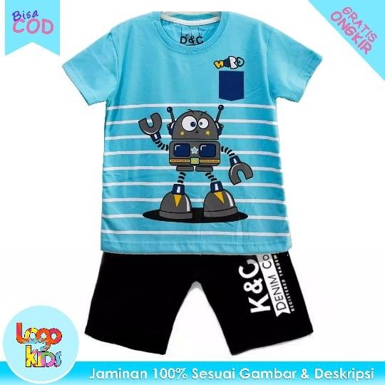 Logokids Setelan Kaos Anak Laki-Laki Motif Robot Salur Blue 1-10 Tahun - 1th
