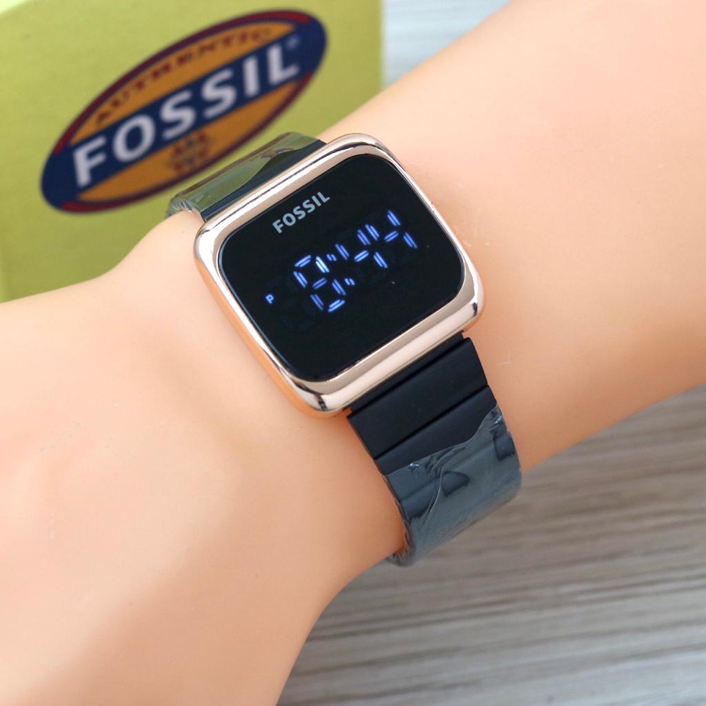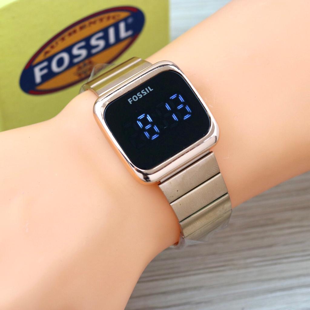 Best Seller - Jam Tangan Fashion Wanita Fossil F6705YU Led Touch Screen Tali Rantai Free Box & Baterai