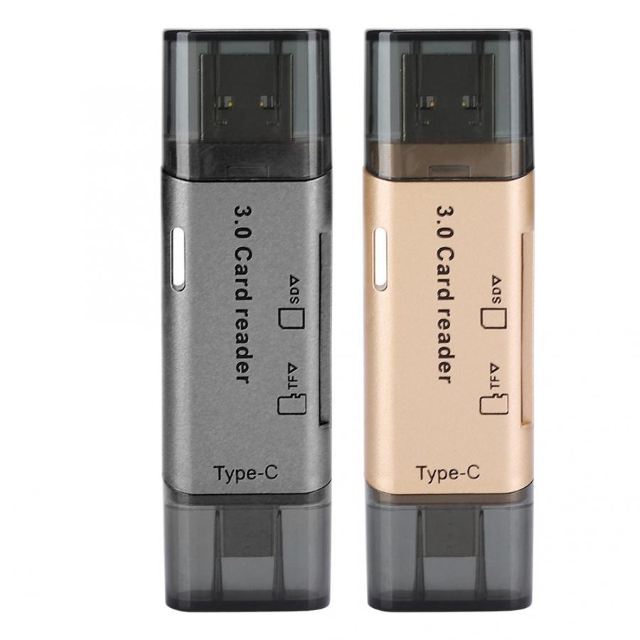 Actual 4 in 1 Card Reader High-Speed Smart 3.0 Metal Type C / Micro USB / SD Card / TF Memory Card Read OTG Adapter