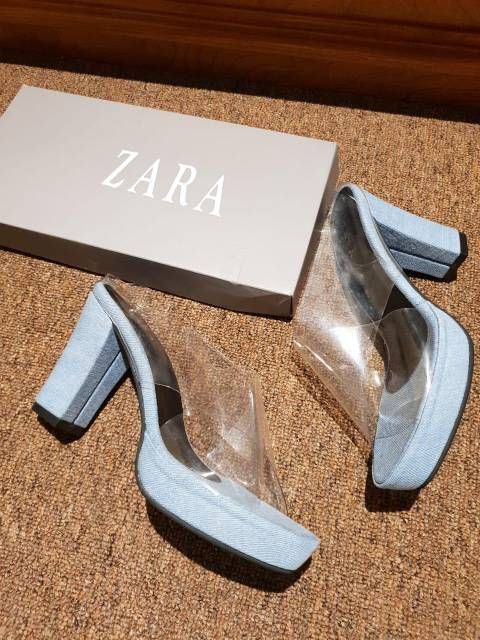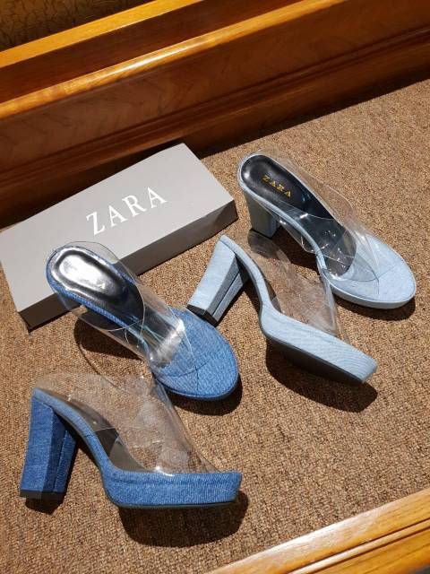 GRATIS ONGKIR DENIM JEANS HIGH HEELS CHUNKY 8,5CM ZARA P2487