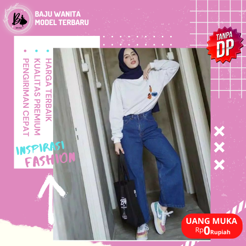 CELANA JEANS WANITA CELANA PANJANG WANITA KULOT LIPAT CELANA WANITA JEANS CASUAL BAJU WANITA MODEL BARU