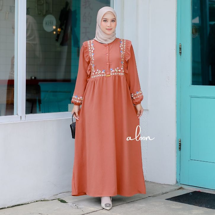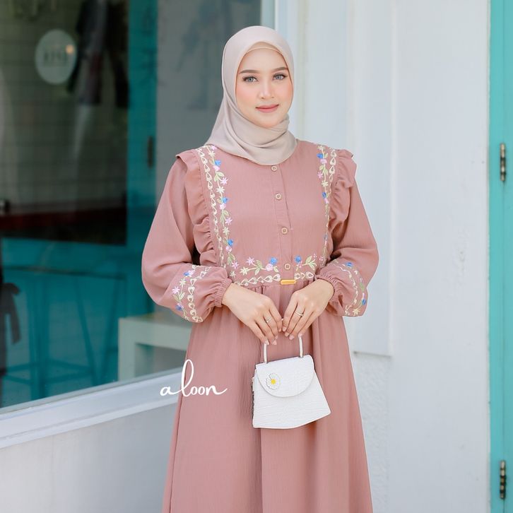 Gamis Wanita Dewasa Murah Bahan Crinkle Airflow Aleena Busui Friendly