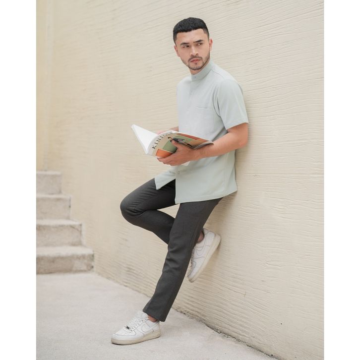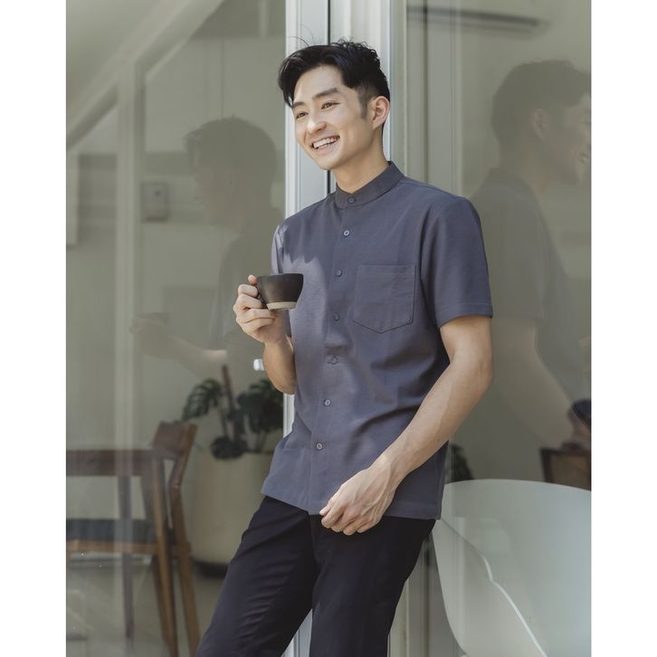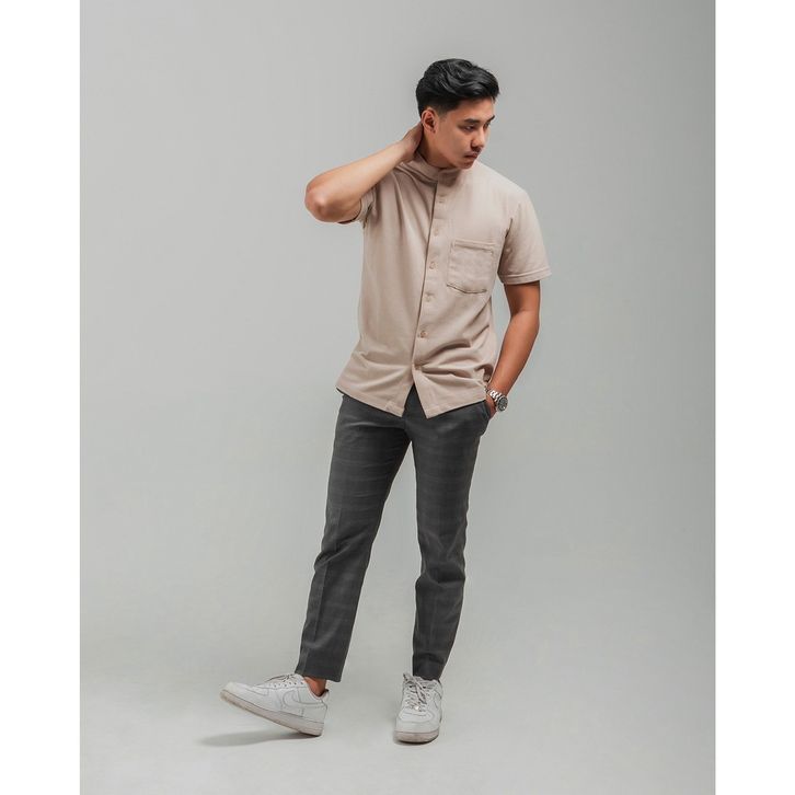 Atasan Kemeja Pria Kerah Shanghai Polos Lengan Pendek Premium