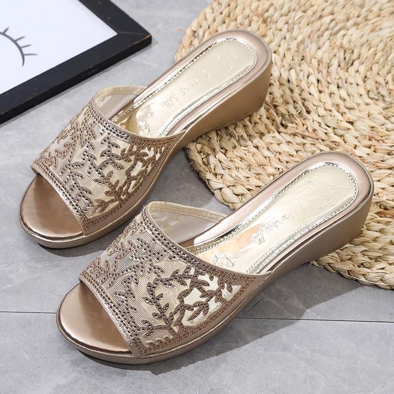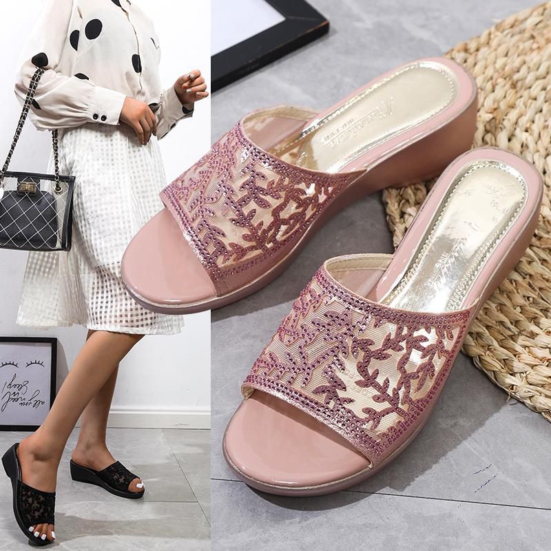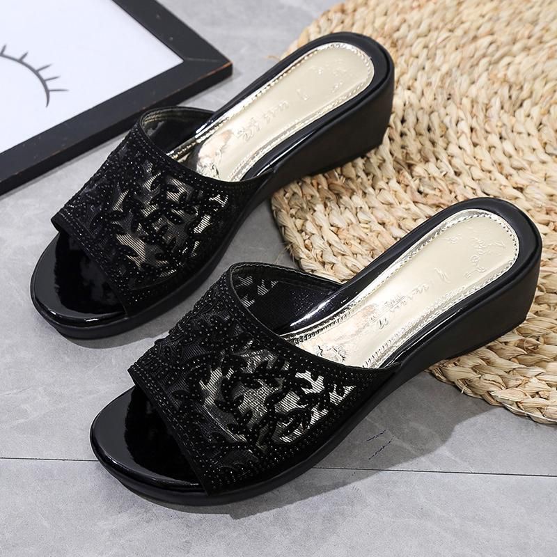 Sandals Wedges 5cm Wanita Import F8002 /Sandals Pesta Wanita Import Mewah