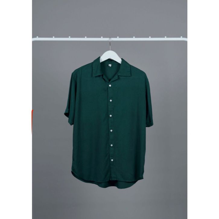 Atasan Kemeja Pria Katun Rayon Polos Lengan Pendek Premium