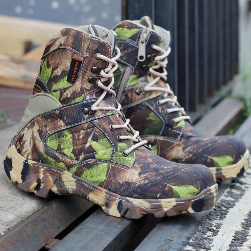 SEPATU BOOTS PRIA CORDURA ARMY TACTICAL RUBICON-CAMO 8 IN CAMOFLASE SAFETY UJUNG BESI LORENG KARET