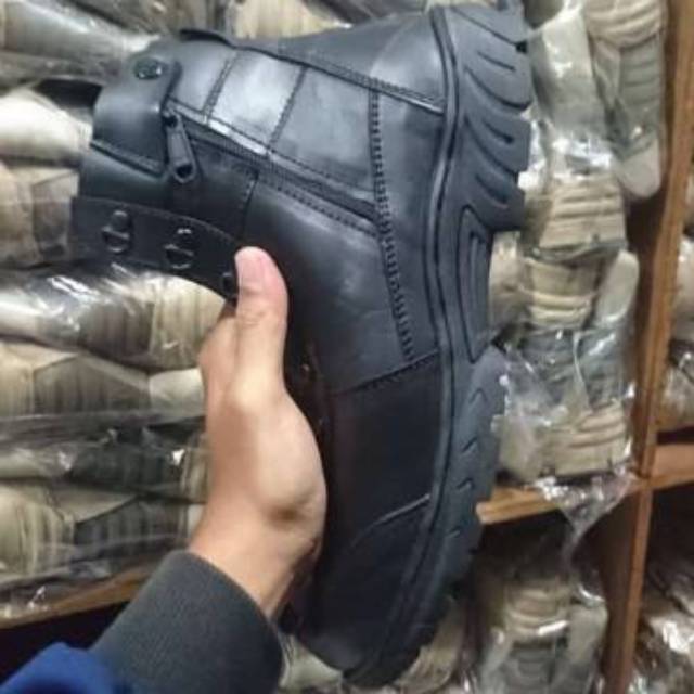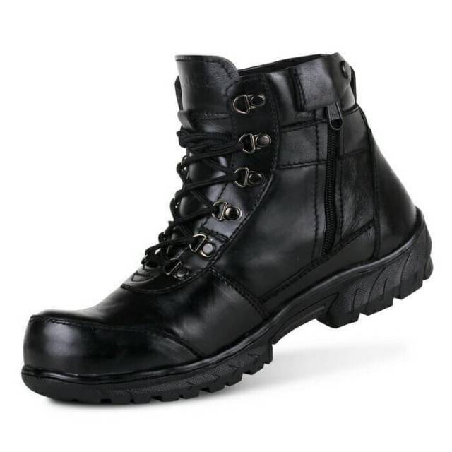 SEPATU SAFETY KULIT ASLI BOOTS PRIA RESLETING POLISI TNI PDH KUAT TERMURAH CROC JP