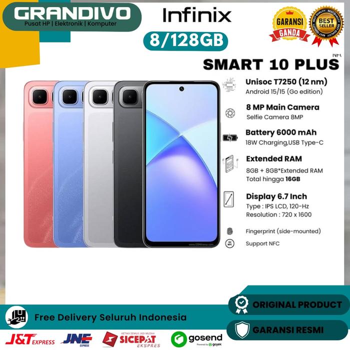 HP Infinix Smart 10 Plus NFC 8/128GB Up to 16GB Extended RAM 6.67 inch 120Hz HD+ T7250 6000mAh Garansi Resmi - Grandivo