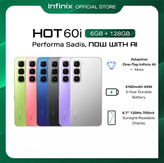 (FREE ONGKIR) Infinix HOT 60i NFC 4G ( Ram 6GB + Rom 128GB ) Garansi Resmi