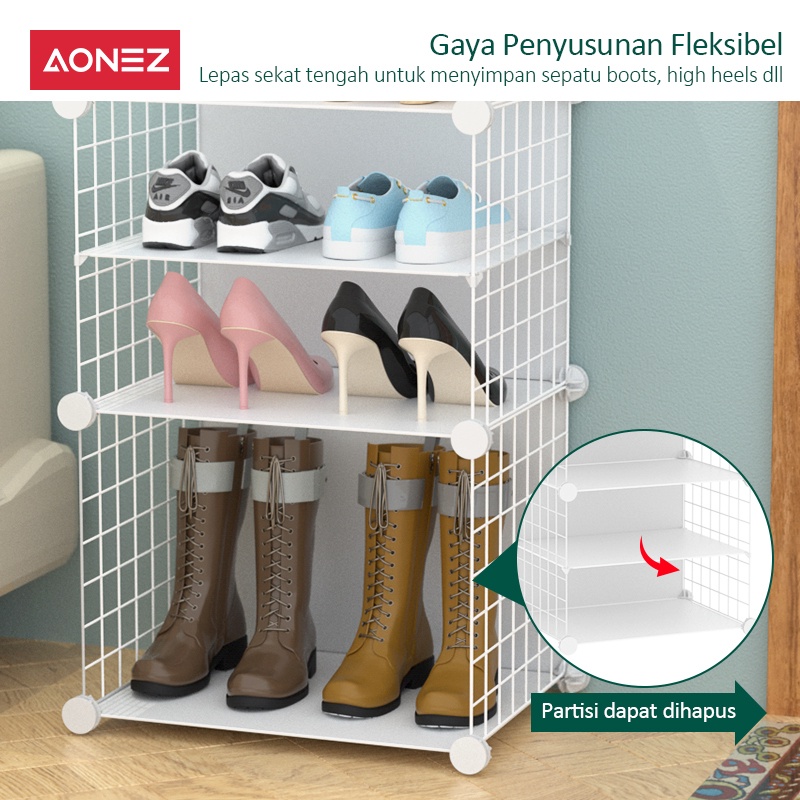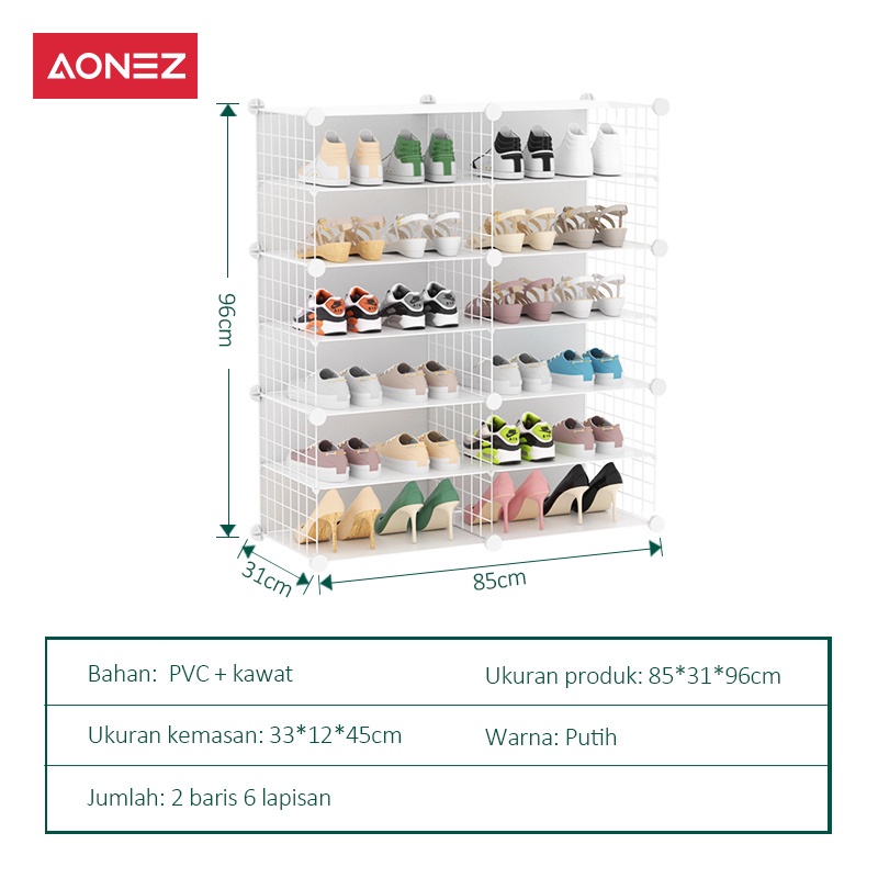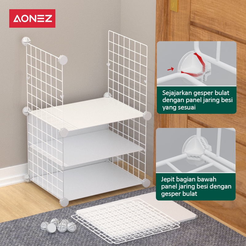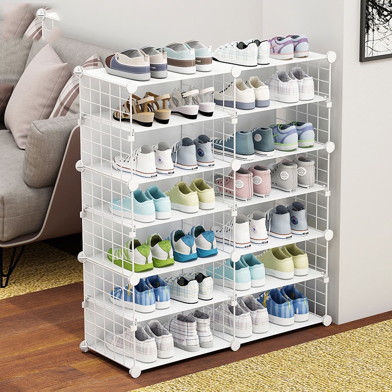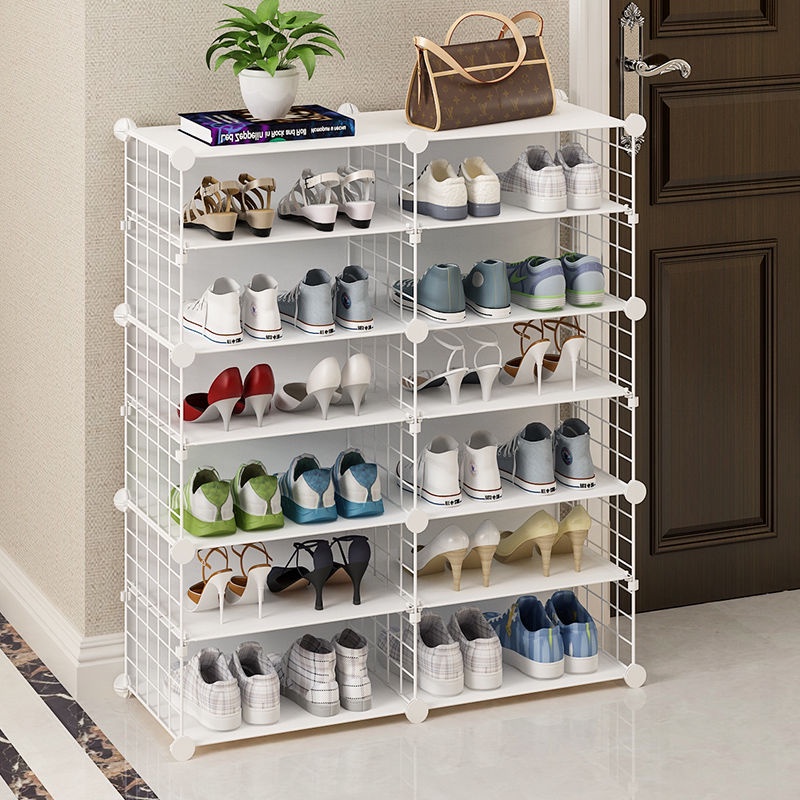Rak Sepatu iron mesh simple shoe cabinet household storage space saving multi-layer door assembly small shoe rack 1/2 ro