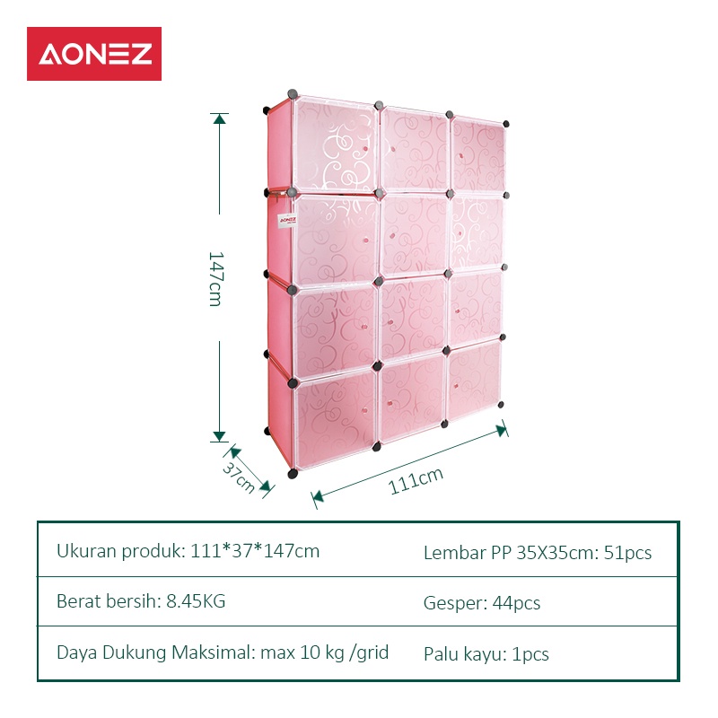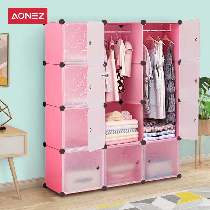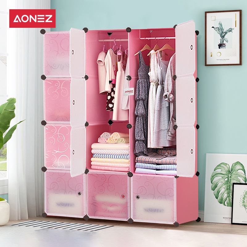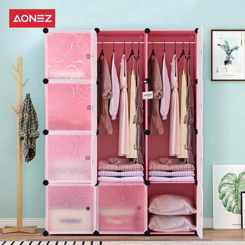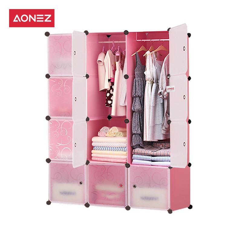 Lemari Plastik 2 Gantungan 12 Pintu Lemari Pakaian Plastik Serbaguna Lemari Susun minimalism gantungan baju