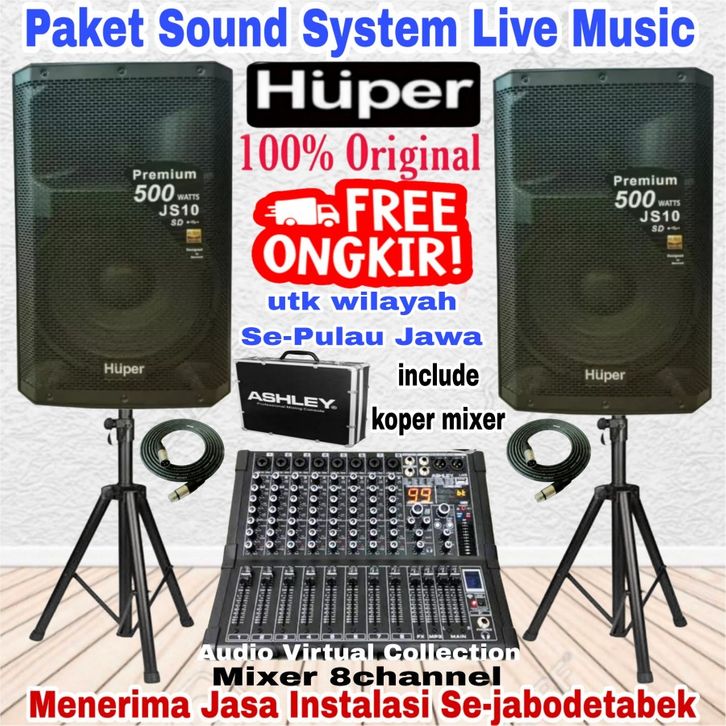 Paket Sound System 15 inch HUPER JS10 Original Mixer Ashley 8 Chanel