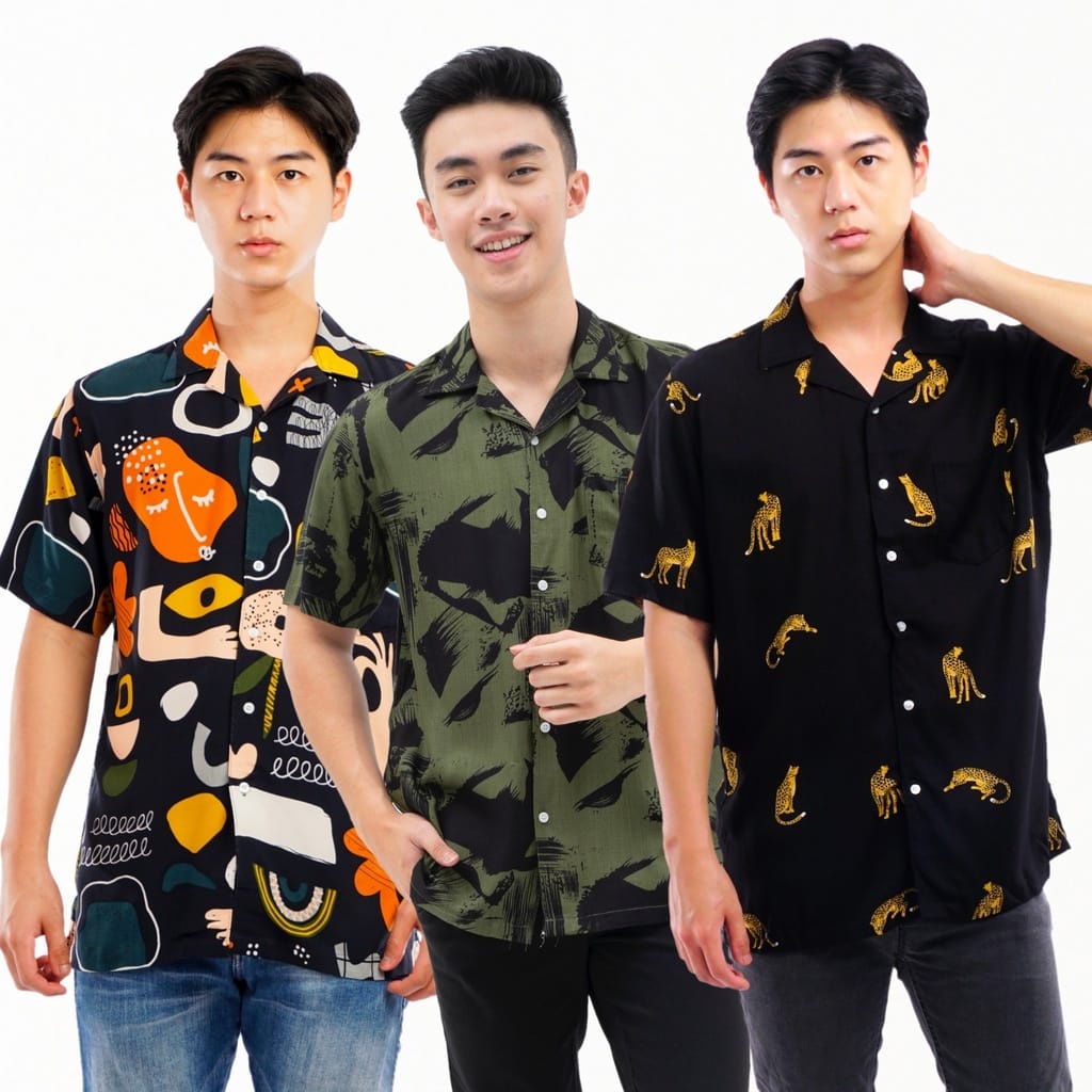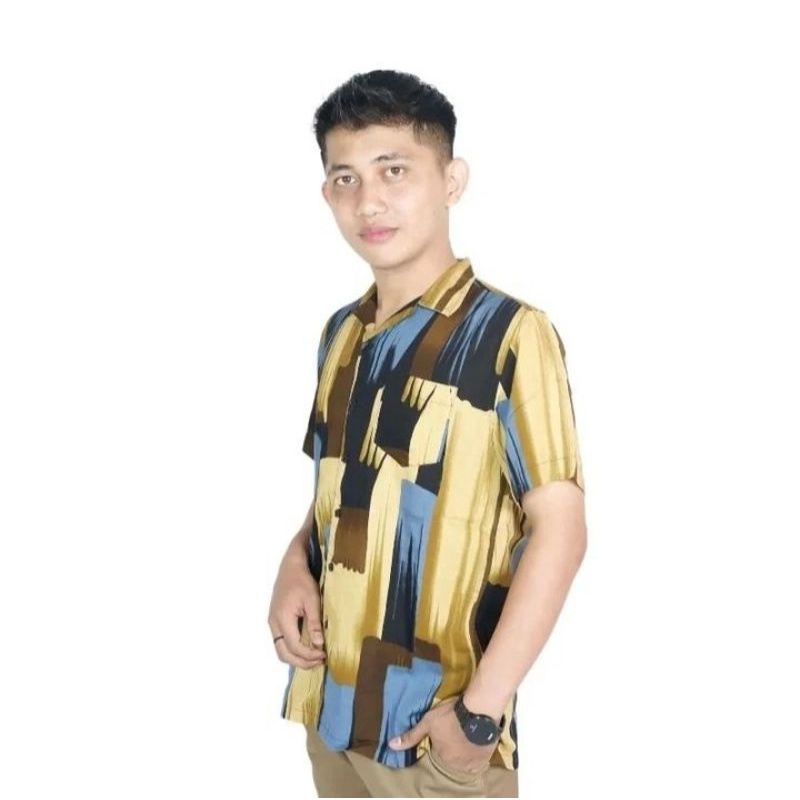 KEMEJA RAYON PIYAMA MOTIF LENGAN PENDEK PRIA WANITA