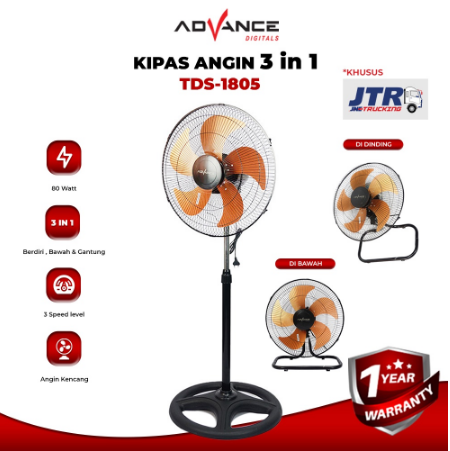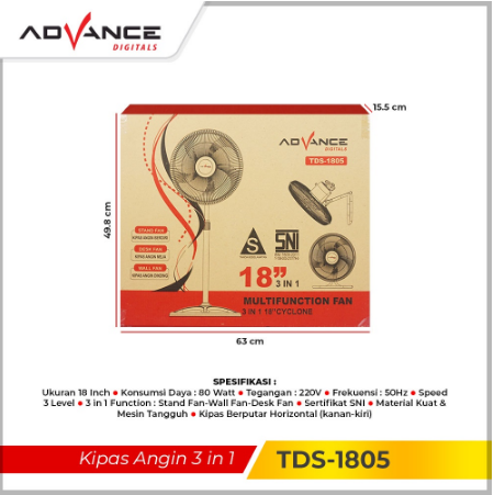 Advance Kipas Angin 3in1 Stand/Desk/Wall TDS1805 Garansi Resmi Advance 1 Tahun