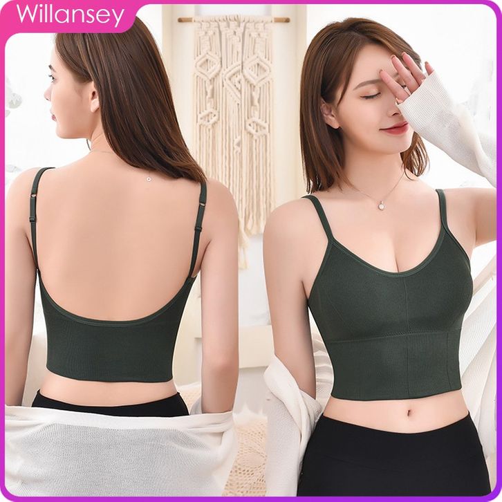 BRALow Back Basic Bralette Tank top Bra Sport Tanpa Kawat Model U Motif Pakaian Dalam Wanita