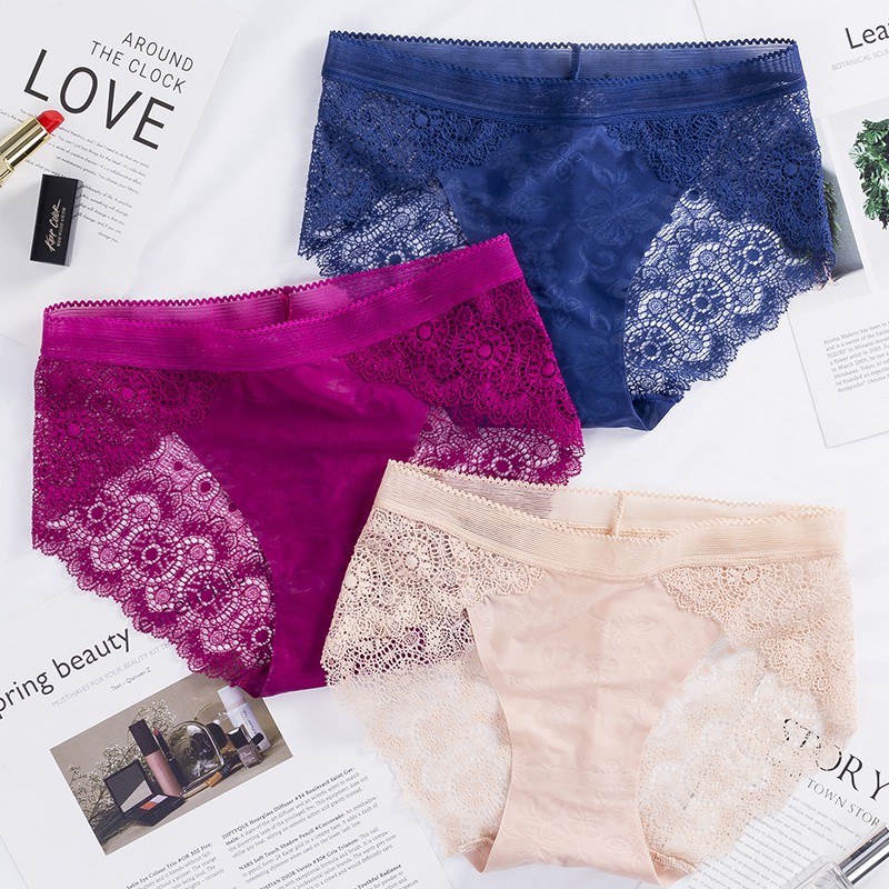 Celana Dalam Brief Wanita Model Seamless dengan Bahan Sutra dan Hiasan Renda Bergaya Sexy