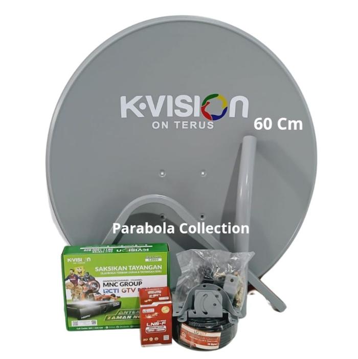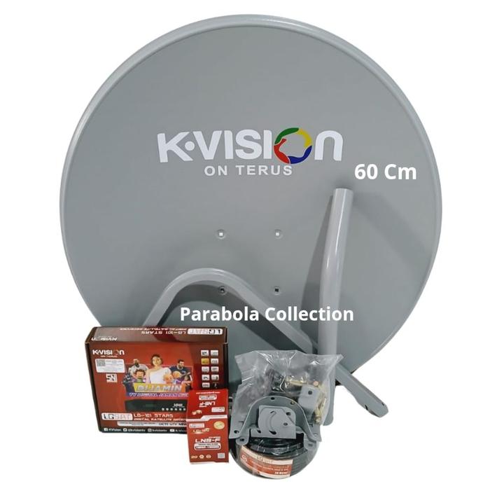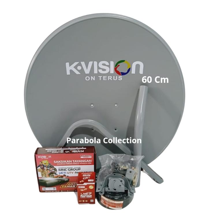 PARABOLA KVISION 60 CM FULL SET LENGKAP PAKET RECEIVER BROMO / LGSAT / GARDINER / OPTUS / CARTENZ K2000 upside parabola