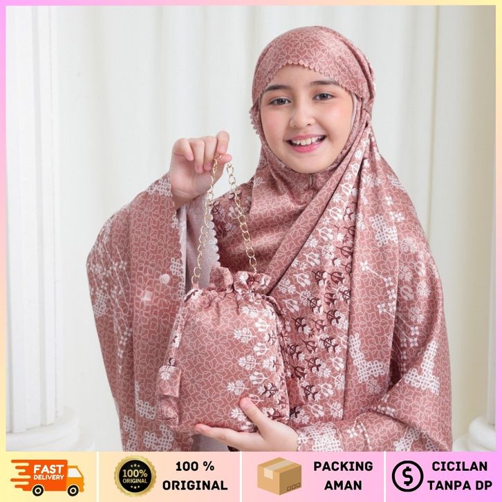 Mukena Anak Perempuan 2in1 Silk Motif Printing Mewah 6 - 12 Tahun Remaja Tanggung Jumbo Kekinian