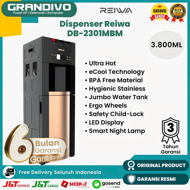 FreeOngkir Dispenser Galon Bawah Hot&Cool REIWA DB-2301 GARANSI RESMI - GRANDIVO