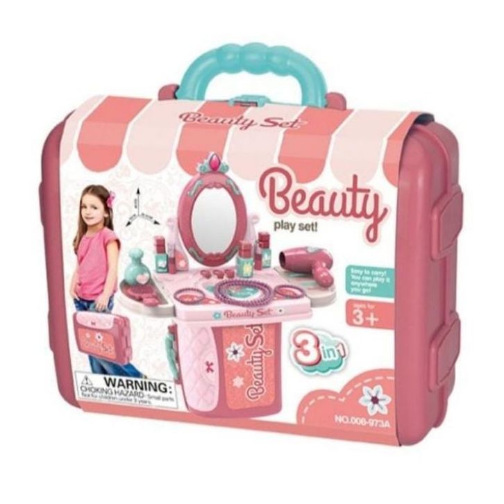 3in1 beauty Mainan alat make up anak MAINAN ANAK PEREMPUAN DANDAN BEAUTY PLAYSET 31N1 SALON KOPER MEJA RIAS