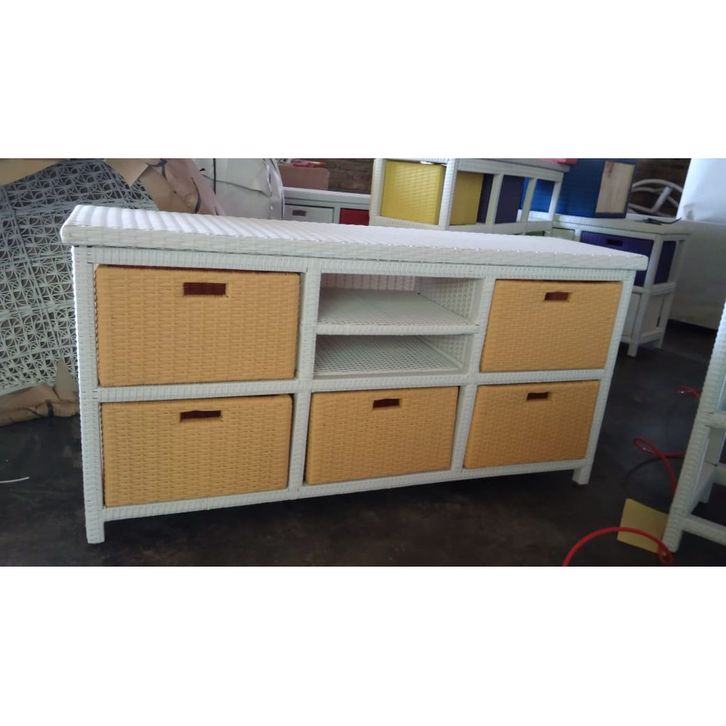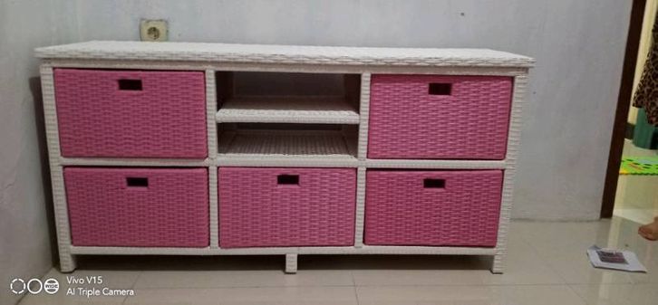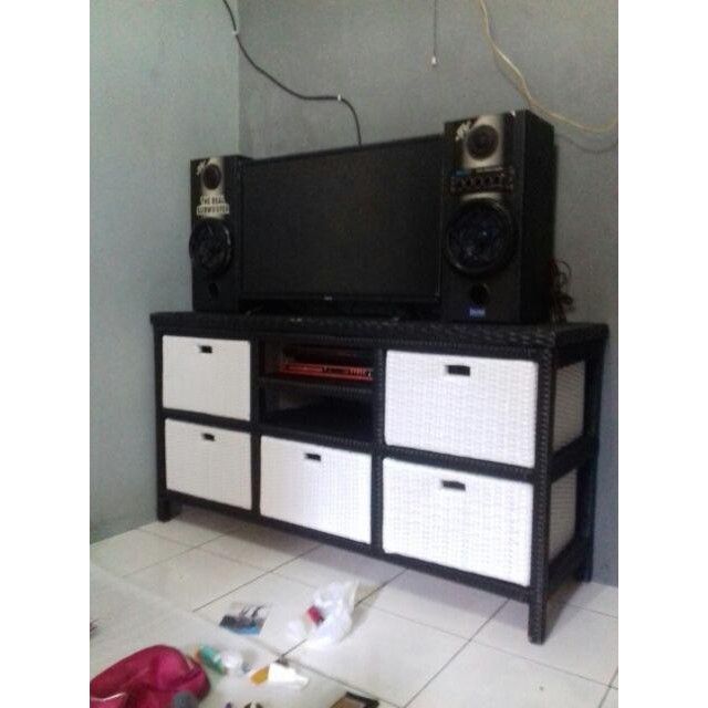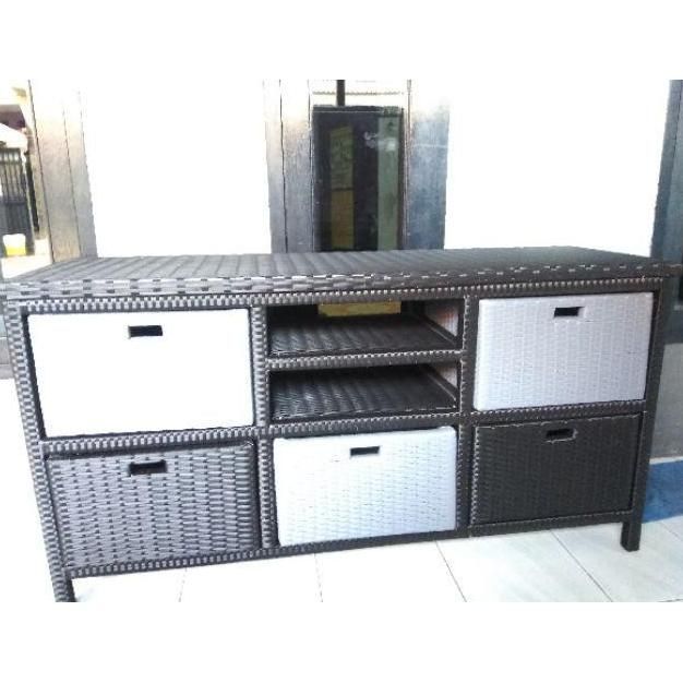 (WARNA YANG DIKIRIM RANDOM) Rak Minimalis Laci TV DVD Lemari Bufet Rotan Sintetis High Quality Best Seller