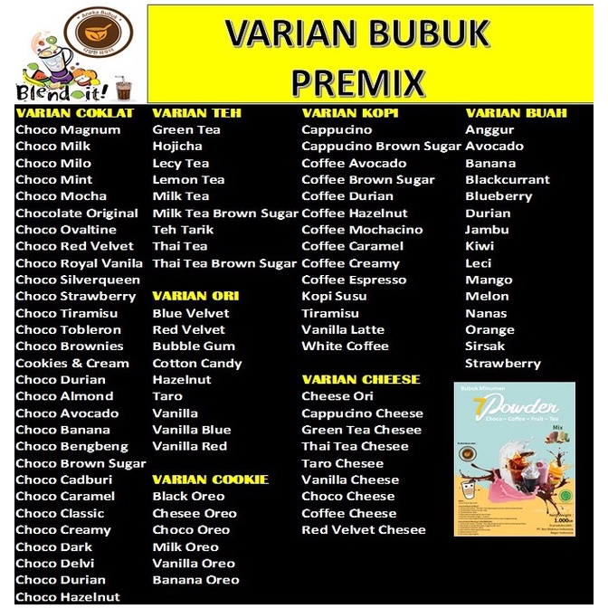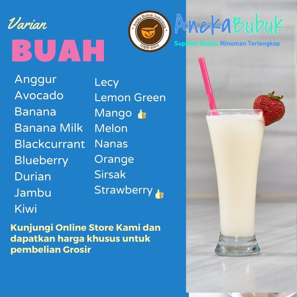 90 VARIAN BUBUK MINUMAN ANEKA RASA PREMIX 1KG - GROSIR SERBUK MINUMAN ES BOBA KEKINIAN 1KG