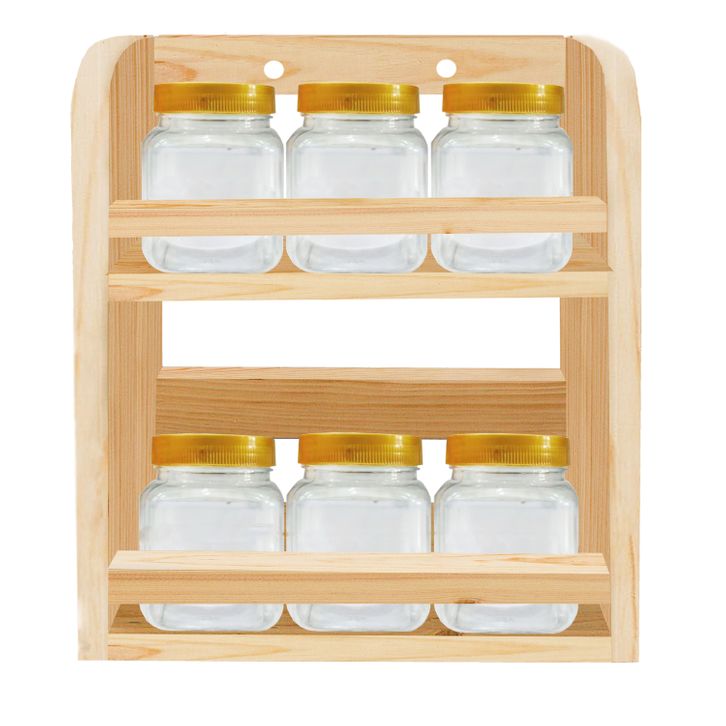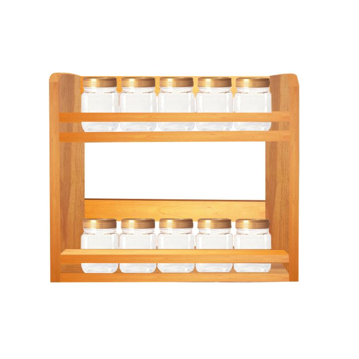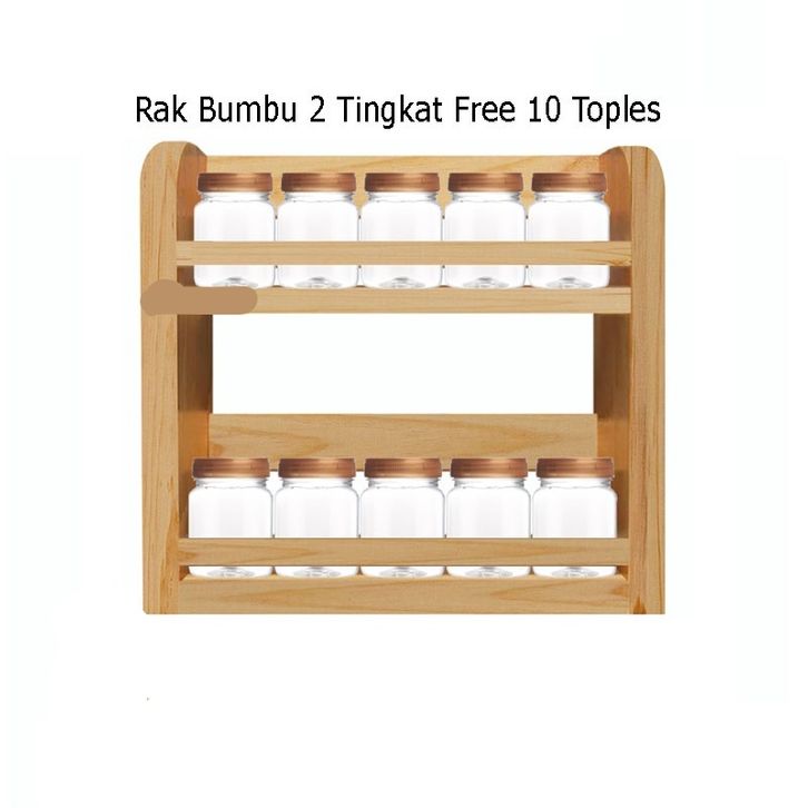 (FREE BUBBLEWRAP) Tempat Bumbu Kayu 2 Tingkat dengan 10 Toples Dapat Sticker Bumbu - Rak+10 Toples+Sticker