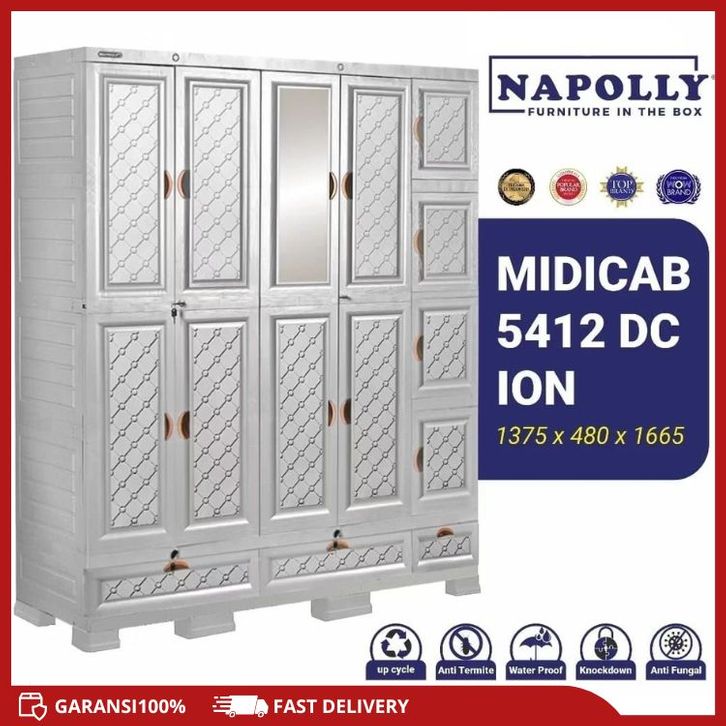 Lemari pakaian Plastik Napolly MIDICAB 5412 Jumbo Serbaguna Gantung Rak Kaca Kunci Laci