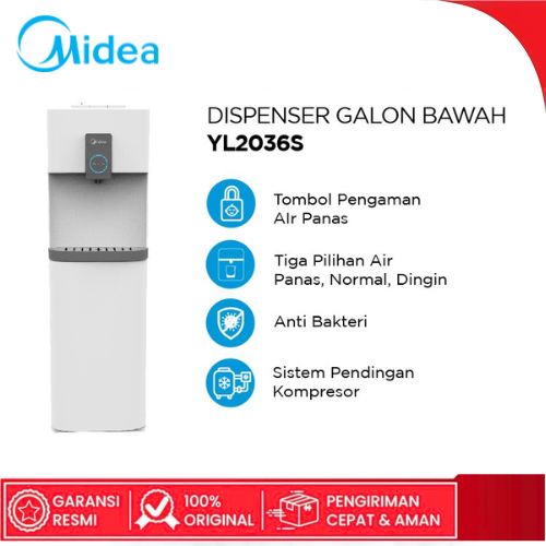 MIDEA DISPENSER GALON BAWAH YL2036S TERMOS AIR PANAS DINGIN HEMAT DAYA WATER COOLER BOTTOM LOADING LOW WATT ORIGINAL