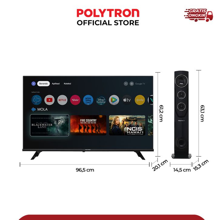 POLYTRON SMART GOOGLE TV CINEMAX 50 43 40 32 24 INCH IN SET TOWER SPEAKER SOUNDBAR TELEVISI DIGITAL LED MURAH