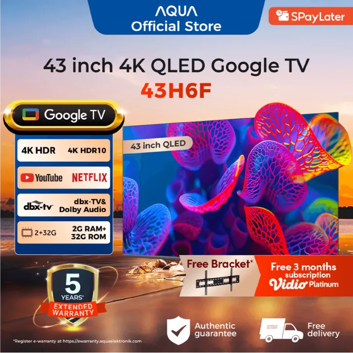 TV AQUA SMART GOOGLE TV 50 58 43 42 32 INCH 4K UHD LED ANDROID DIGITAL FHD HP USB WIFI CONNECT MURAH