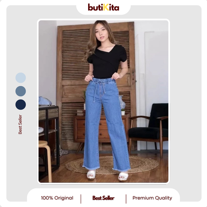 CELANA JEANS WANITA HIGH WAIST JUMBO KEKINIAN TERBARU CELANA LEVIS WANITA KULOT JEANS PINGGANG KARET RAWIS